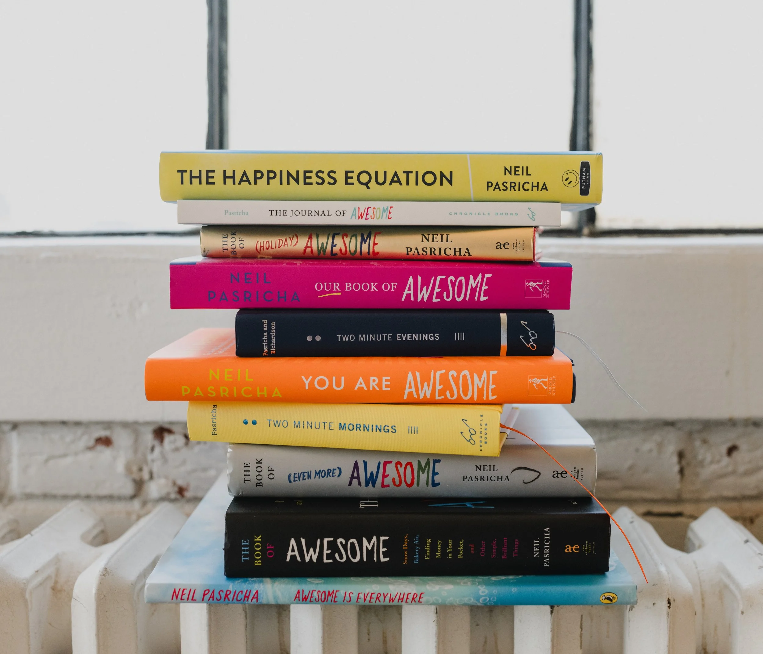 I wish this book was called 'The Resilience Equation' so that's what I'm calling it! I realize the cover still says 'You Are Awesome', but what are you going to do? Full disclosure: I did ask the good folks at Simon & Schuster if we could change it and they politely said ... no. I get it! That would be confusing. But it's confusing already because this is not at alla book of awesome things and despite what Amazon says this is not at all"book 4 of 4 in the AWESOME series." Let me set the record straight: This is my book on resilience. How to develop resilience as a skill—as a muscle. The book is 9 longform chapters combining research, memoir, self-talk, and habits like "Add A Dot-Dot-Dot", "Tell Yourself A Different Story", and "Untouchable Days." It's the book I wrote after 'The Happiness Equation' and has a similar 9-step guidebook structure. It's my favourite book I've written and the one I'm proudest of. Buy it on Amazon, B&N, Bookshop, Indigo, or Walmart. (Or if you're buying 25+ copies get a bulk discount here.)