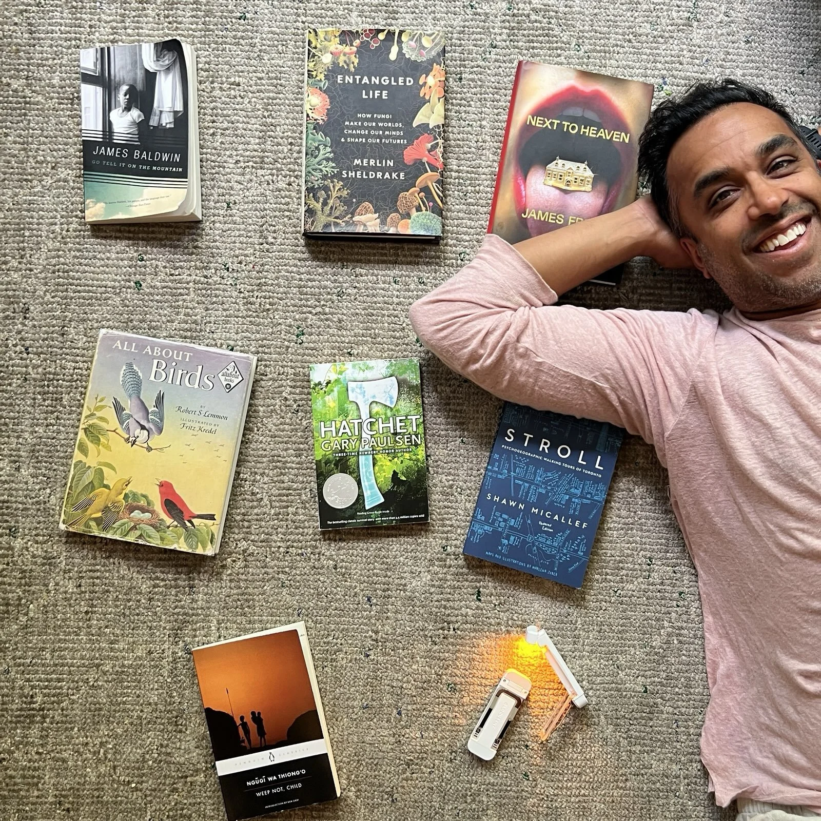 8. Neil's Reading Light Recommendation. There is no 8! Normally I close things off with a loot bag of links but this month I’ll share just one: A reading light! I put two of them in the picture above. We have about seven now. This is hands down the best reading light I’ve found and I’ve tried so many over the years: headbands, red lights, extendable-ET-neck things. I have no affiliation with whatever Chinese factory makes this light but we’ve come to love them and bought one for all our kids. Pack them in camp bags! Leave them under pillows! Stuff them in suitcases! It’s perfect: USB powered, no wires or cables (just needs one of those old white iPhone charging blocks with a USB hole in it), needs charging like twice a year, has three different lights (yellow, white, light blue), five brightnesses, a metal fold-out arm that you can attach to your book’s back cover, and even a little bendable head on top. Sometimes I just leave it lying on my chest and point it up at the book for that flashlight-under-the-blanket feel. (Doesn't it always feel good to read in that light? It makes reading a secret between you and the book somehow.) Anyway, we’ve never had a single one break, the buttons are super intuitive (no manual or need for one!), and it’s just … perfect. Here is the company website or links on Amazon.com, Amazon.ca, Amazon.co.uk. I collect zero affiliate or sponsor money from any links here or anywhere in my emails. If you want to support this endeavor (thank you!) ... I present a platter of my books! Just click the photo and send one to someone you love. I recommend the top two!)